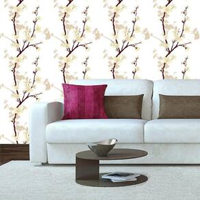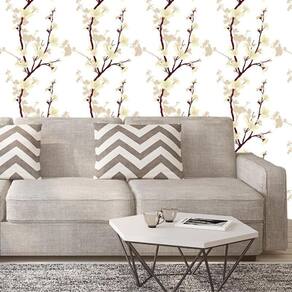 Papel De Parede Galhos Marrom Flores Amarela Adesivo Sala