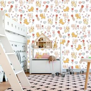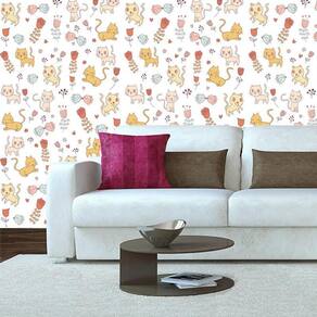 Papel de parede gatinhos rosas passarinhos autocolante sala