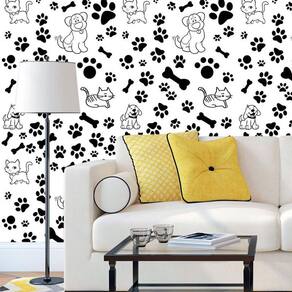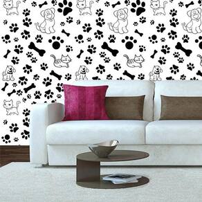 Papel De Parede Gato Cachorro Pegadas Cor Preto Adesivo
