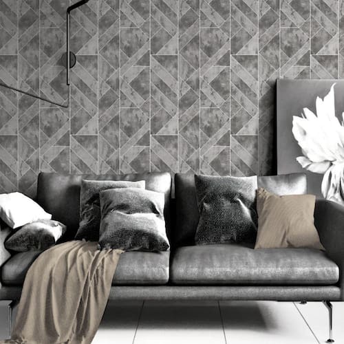 Papel De Parede Geométrico Cinza E Prata - Col1016