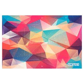 A impressão é feita em vinil adesivo. É um material lavável, impermeável, autocolante e antimofo. O produto cobre uma área de 3,50m, contando com 1,75 metro de altura por 2 metros de largura.