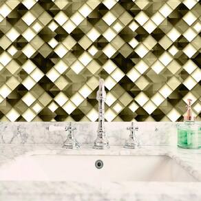 Papel de parede geométrico quadrados cinza preto com amarelo