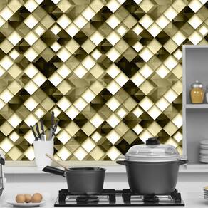 Papel de parede geométrico quadrados cinza preto com amarelo