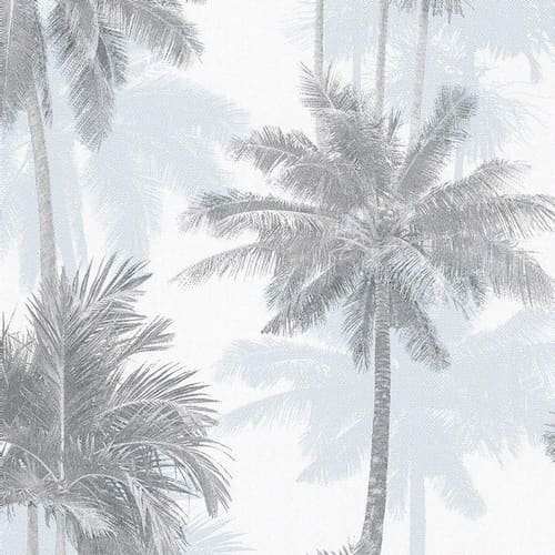 Esse papel de parede de palmeira na cor cinza é uma linda homenagem ao tema botânico, bastante contemporâneo e fresco. A sombra ao fundo oferece um efeito tridimensional à arte.