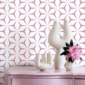 Papel de parede geométrico rosa e branco.