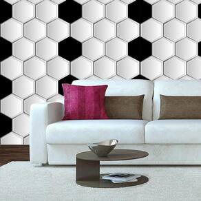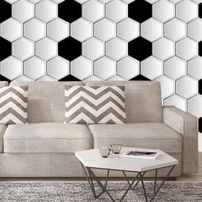Papel De Parede Hexagono Preto E Branco Adesivo Sala Quarto