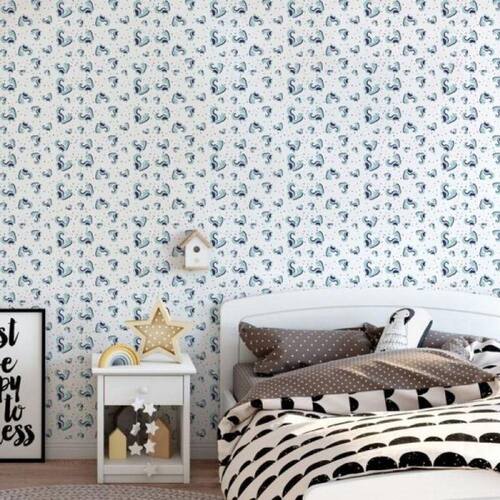 O Papel de Parede Dinossauros Azul é autocolante, dispensando o uso de cola como em Papéis de Paredes convencionais. Você deverá apenas limpar a parede ou onde será aplicado com pano seco, retirar a película protetora e aplicá-lo.