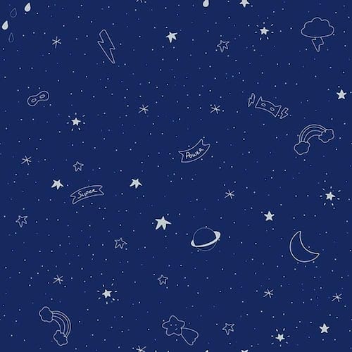 Papel de Parede Infantil espaço azul escuro FOFURA BABY DA EDANTEX - Coleção de Papel de Parede Fofura Baby é uma explosão de temas infantis, repleto de estampas que irá deixar o quarto dos pequenos (as) como eles, uma fofura!DESCRIÇÃO DO MATERIAL:Rolo com 10 x0,53 mts,Cobre em média 4 m , Estampa limpável,Boa resistência a luz solar,