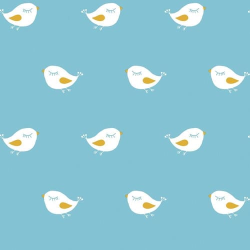 Papel de Parede Infantil passarinhos branco com azul fofura Baby FF4005.