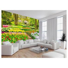 Papel De Parede Jardim Flores Coloridas Pedras 3,5M Jjp50