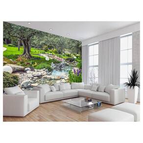 Papel De Parede Jardim Rio Flores Lago Árvores 3,5M Jjp57