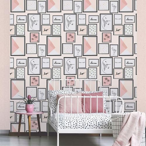 Ter vários quadros e de vários tamanhos na parede se tornou uma febre mundial, principalmente para quem busca tornar o ambiente com uma atmosfera chique e vintage. Esse papel de parede promete levar o melhor da decoração para o quarto dos jovens.