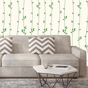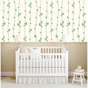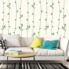 Papel De Parede Linhas Com Folhas Verde Adesivo Sala Quarto
