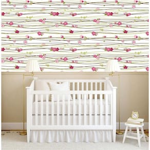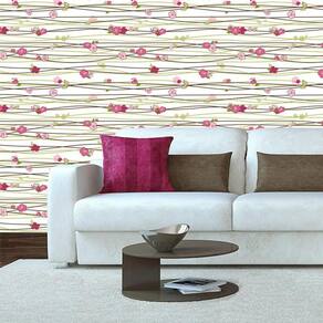 Papel De Parede Linhas Flores Rosas Adesivo Sala Quarto