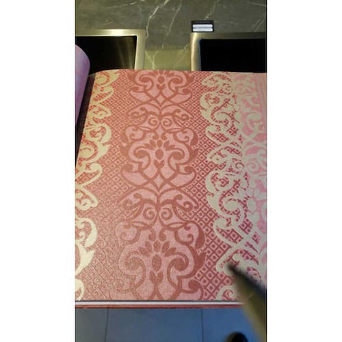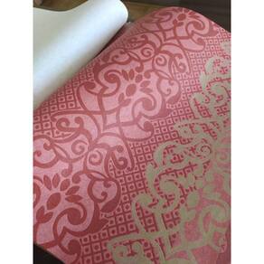 Papel de Parede Lavável Cod.Ga60203. Vermelho com arabescos em forma de listras. Rolo com 5m² (53 cm de largura, 10 metros de comprimento).
