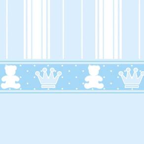 Papel De Parede Listrado Azul Com Coroa E Urso Adesivo Bebê