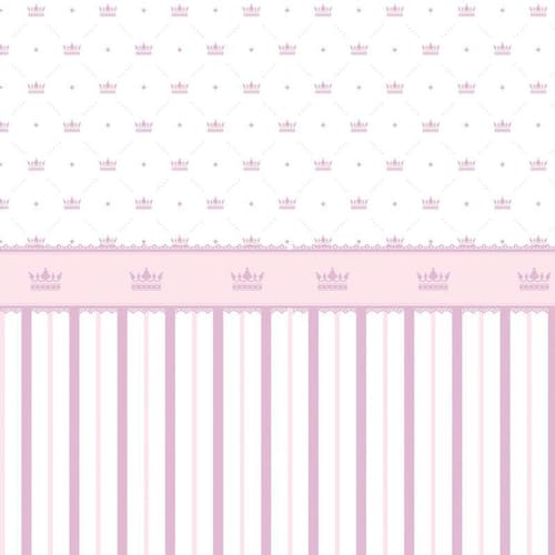 Papel De Parede Listrado Rosa E Lilas Com Coroa Infantil