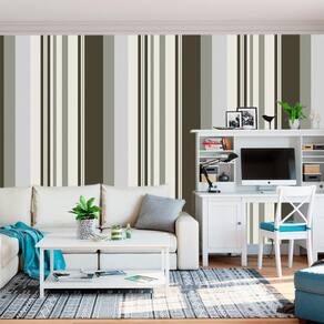 Papel De Parede Listrado Tons Preto E Cinza Adesivo Sala
