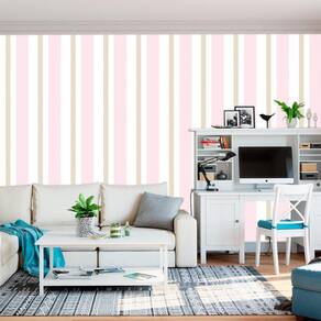 Papel De Parede Listrado Tons Rosa E Branco Infantil Adesivo