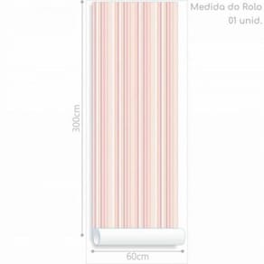 Papel De Parede Listrados Rosa Pastel PRODUTO: Papel de Parede Infantil Listrados Rosa Pastel QUANTIDADE DE CAIXAS DE EMBALAGEM: 1 Unidade de venda: Rolo Rendimento: 1,8 m Montagem: Necessita Montagem PRODUTO PRECISA DE MONTAGEM?: Sim, a montagem é simples mas sugerimos a contratação do nosso serviço de montagem (para os CEPs em que o serviço está disponível) ou de algum profissional experiente de sua preferência COMPRIMENTO DO PRODUTO (CM): 1 ALTURA DO PRODUTO (CM): 300 PESO DO PRODUTO (KG): 0,19 COR PREDOMINANTE: Lilás DESCRIÇÃO DO TAMANHO: Comprimento: 300 cm Largura: 60 cm Espessura 0,01 cm MATERIAL PARA FILTRO: Papel CORES DO PRODUTO (FILTRO DE CORES): Lilás INSTRUÇÕES/CUIDADOS: Limpar com pano macio e seco, não utilizar produtos abrasivos. MODELO: Papel de Parede Infantil Listrados Rosa Pastel LARGURA DO PRODUTO (CM): 60 PESO PRODUTO COM EMBALAGEM (KG): 0,49 LARGURA PRODUTO COM EMBALAGEM (CM): 11 MARCA: Casa H ESTADO DE ORIGEM: SP MATERIAL PRINCIPAL: Papel COMPRIMENTO PRODUTO COM EMBALAGEM (CM): 61 ALTURA DO PRODUTO COM EMBALAGEM (CM): 5 CONTEÚDO DA EMBALAGEM: 1 Papel De Parede