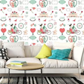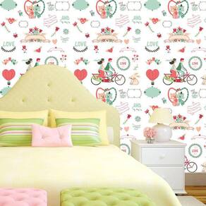 Papel de parede love amor flores pássaros coloridos adesivo