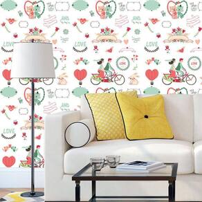 Papel de parede love amor flores pássaros coloridos adesivo
