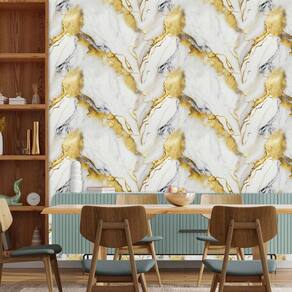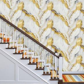 Papel De Parede Marmore Branco Dourado Autocolante Sala