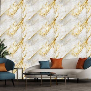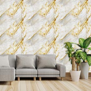 Papel De Parede Marmore Carrara Dourado Autocolante Sala