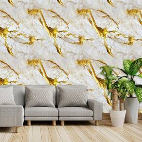 Papel De Parede Marmore Carrara Dourado e Cinza Autocolante