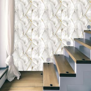 Papel de Parede Marmore Dourado Cinza Adesivo Sala Quarto