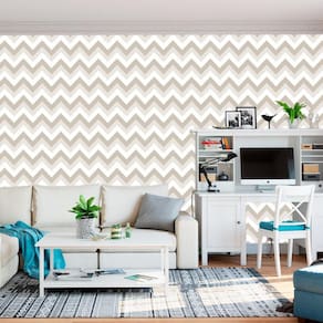 Papel De Parede Marrom Cinza E Branco Chevron Adesivo Sala