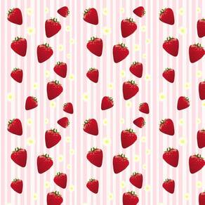 Papel De Parede Morango E Flores Com Listras Adesivo Lavável