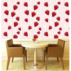 Papel de parede morango e flores com listras adesivo lavável