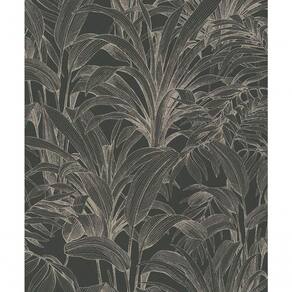 Papel De Parede Muse Folhagem Preto E Prata A51403