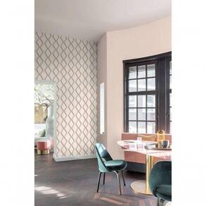 O Papel de Parede Audagio abraça o renascimento dos anos 20, combinando um motivo fosco em forma de diamante.
