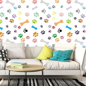 Papel De Parede Ossos E Pegadas Coloridas Autocolante Sala