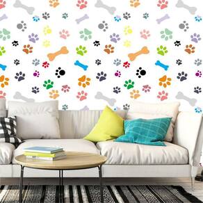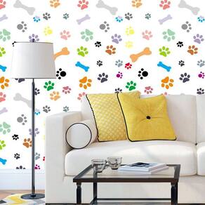 Papel De Parede Ossos E Pegadas Coloridas Autocolante Sala