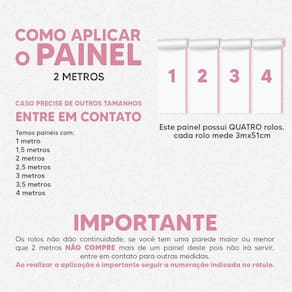 Antes de instalar orientamos abrir os rolos e simular a montagem no chão, garantindo que o painel será montado na ordem correta da estampa comprada. Qualquer problema ou dúvida, favor entrar em contato antes da instalação não aceitamos devolução de produto utilizados .