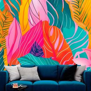 Papel De Parede Painel 3D Folhas Bananeira Colorida 2,5M