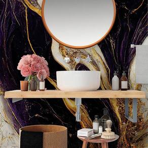 Papel De Parede Painel 3D Mármore Branco Ouro Roxo 1,5M