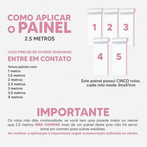 Antes de instalar orientamos abrir os rolos e simular a montagem no chão, garantindo que o painel será montado na ordem correta da estampa comprada. Qualquer problema ou dúvida, favor entrar em contato antes da instalação não aceitamos devolução de produto utilizados .