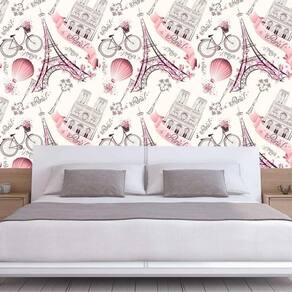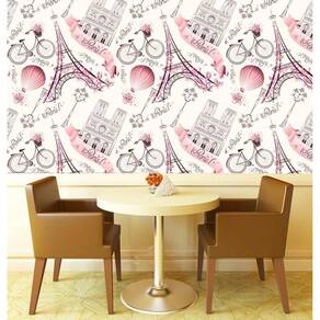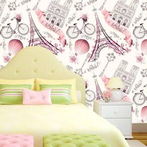 Papel de parede paris balão rosa e amarelo claro autocolante