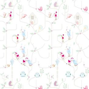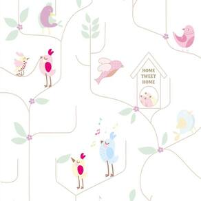 Papel De Parede Passarinhos Cantando E Pipa Infantil Adesivo