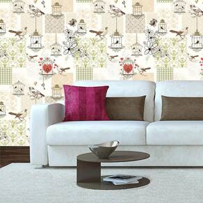 Papel de parede pássaros coração gaiola autocolante lavável