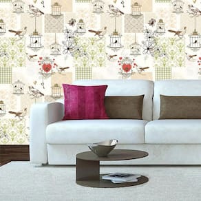 Papel de parede pássaros coração gaiola autocolante lavável