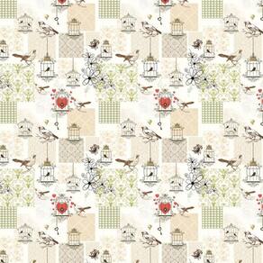 Papel de parede pássaros coração gaiola autocolante lavável