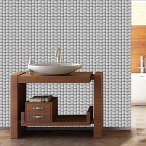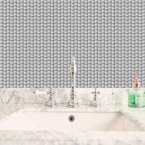 Papel De Parede Pastilha Cinza Prateado Autocolante Cozinha