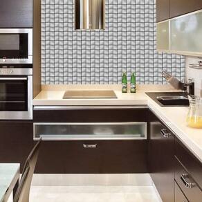 Papel de parede pastilha cinza prateado autocolante cozinha
