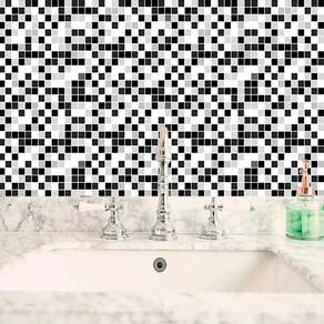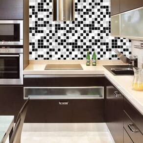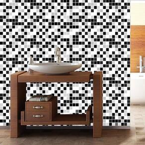 Papel de parede pastilha preto branco cinza adesivo cozinha
