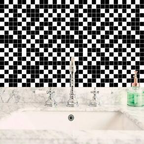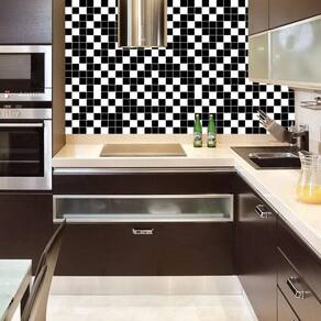 Papel de parede pastilha preto e branco autocolante cozinha
